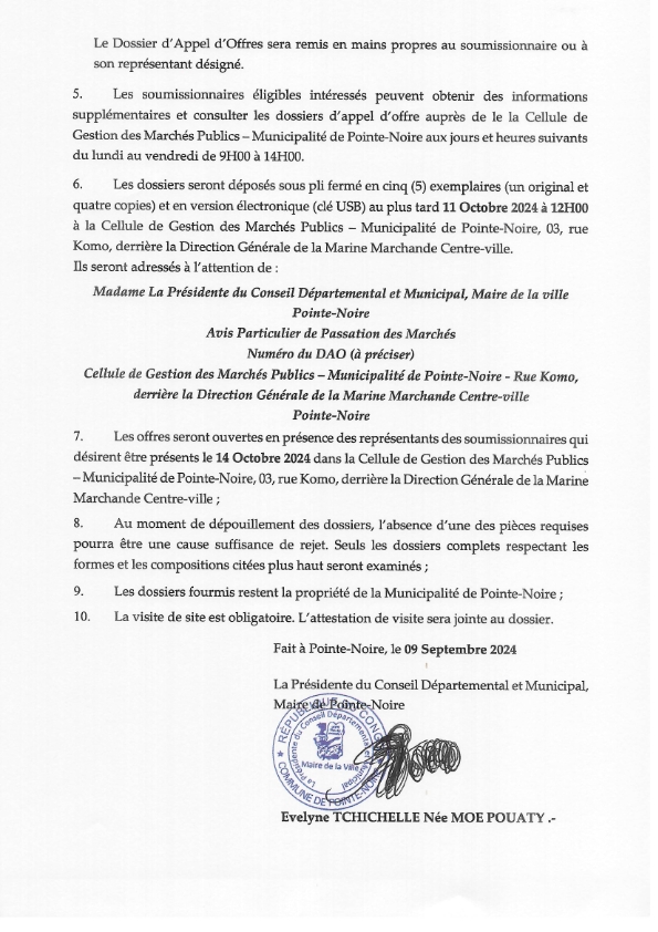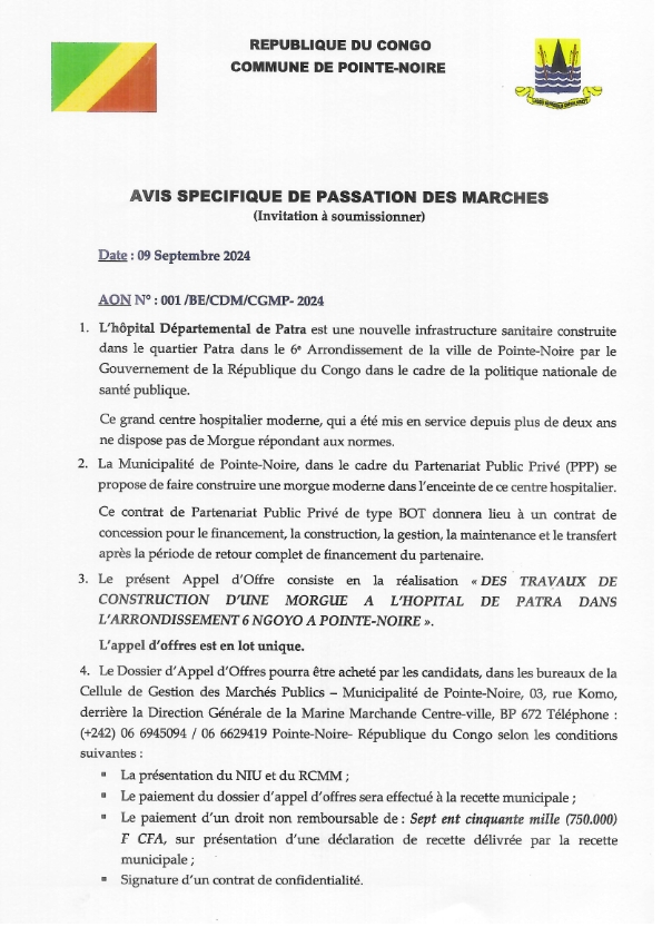 Avis spécifique de passation des marchés